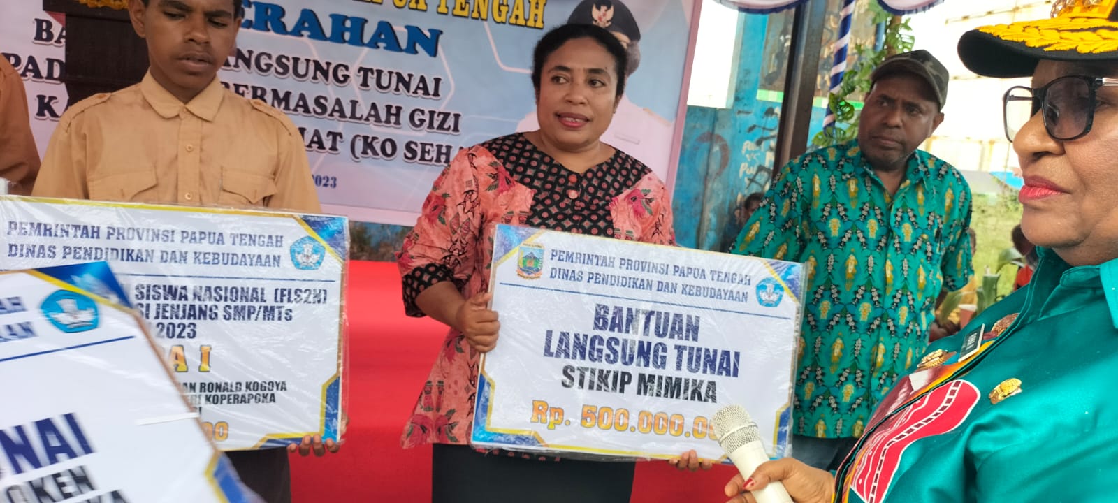 Dalam rangka meningkatkan kesejahteraan dan mendukung kebijakan pembangunan yang berkelanjutan di wilayah Papua Tengah, di bawah pimpinan Ibu Dr. Ribka Haluk,S.Sos.M.M selaku Pelaksana Jabatan Gubernur Papua Tengah, dengan bangga memberikan Bantuan Langsung Tunai kepada masyarakat di wilayah Pomako, yang menjadi perhatian penuh Propinsi dan Kabupaten terhadap terhajdinya kasus Stunting Timika pada tanggal 15 Oktober 2023.