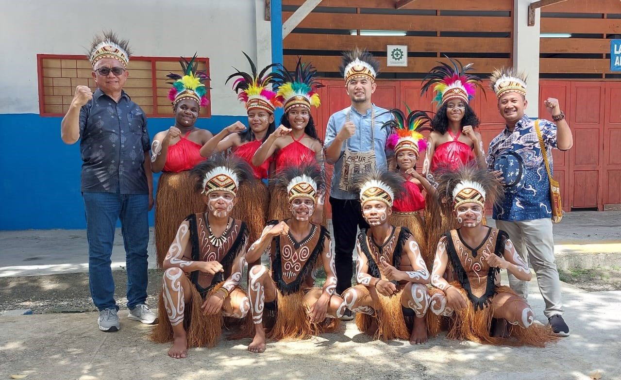 Foto Bersama: Penyambutan Tim Asesor dari BAN-PT dan para Penari mahasiswa STKIP Hermon Timika